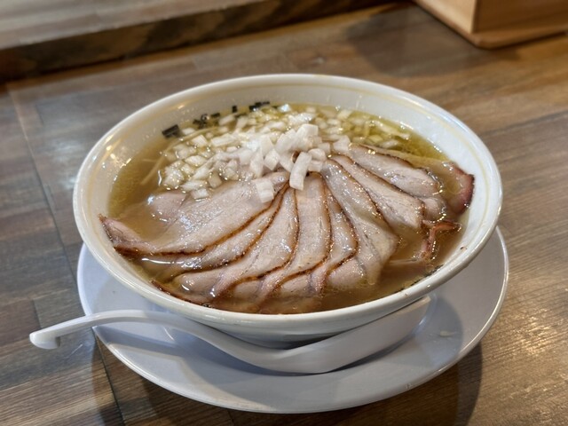 I think it is a chicken soup. The soy sauce has an aroma, sweetness, and sourness, and the large amount of raw chopped onion is a neutralizing agent. I think this is also possible.
