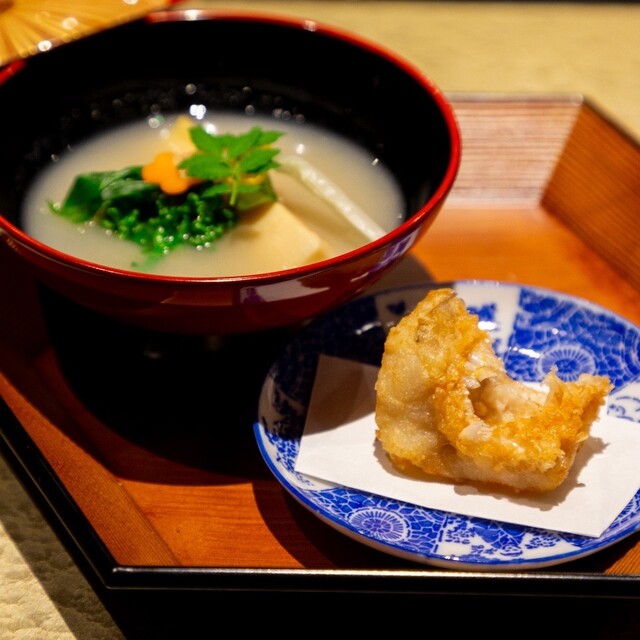 The Tempura is not dipped in soy sauce, but eaten as it is. The tempura was fried crispy and served with tea salt. All were delicious.