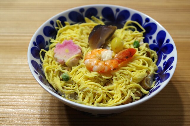 Chirashizushi is stuffed into a bowl and steamed in a steamer.