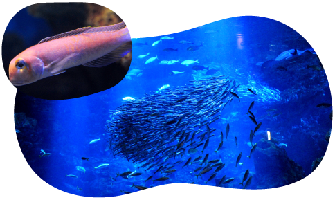 The “Kyoto Sea” tank, consisting of approximately 500 tons of artificial seawater, reproduces the entire Kyoto Sea, which is rich with a wide variety of creatures. There are seven view spots including a skylight and a cave.