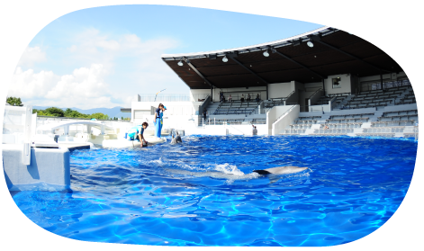 Kyoto Aquarium has three café corners. Visitors can enjoy their favorite beverages and snacks while watching the dolphin program or taking a break.