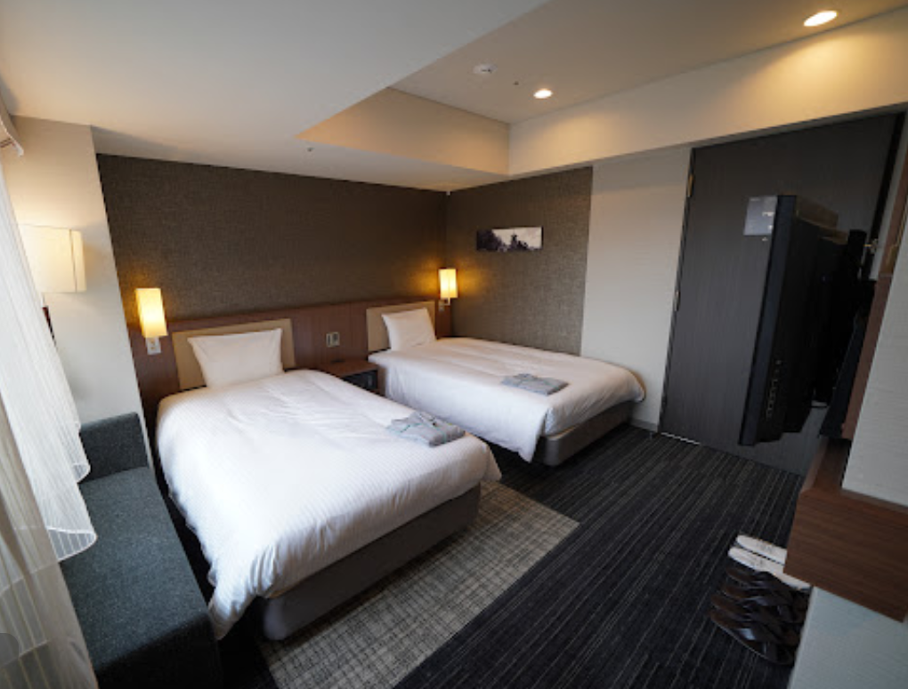 It is a little far from Kyoto station, but just a short walk from Karasuma-Oike subway station. It is not downtown, but there are various stores in the neighborhood. The room has a double bed and is spacious enough for single use. The bathroom is spacious and not cramped at all. The facilities are not the latest, but there are plenty of electrical outlets, so there is no problem. The staff is also very helpful. It is a four-star hotel and they are very attentive.