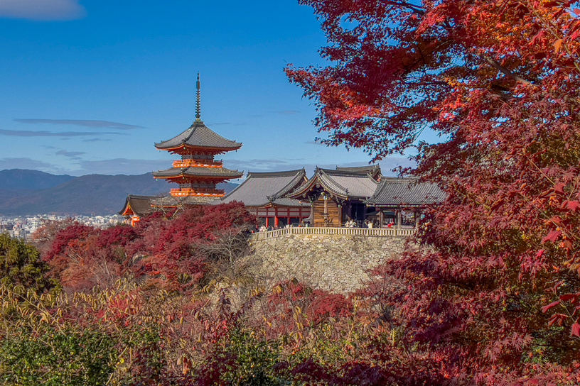The temple grounds are lined with national treasures and important cultural assets, including the main hall, from which the phrase “jumping off the stage at Kiyomizu” was derived, and the three-storied pagoda.