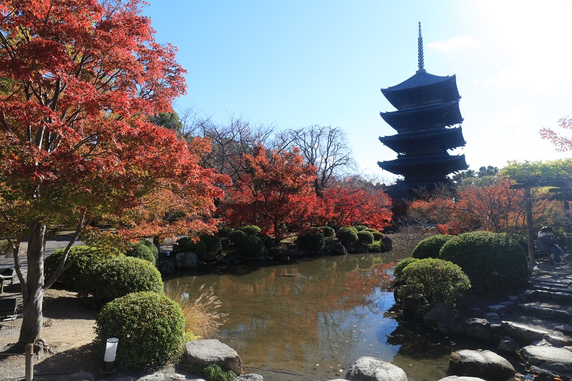 To-ji Temple, a World Heritage Site, is known for its five-story pagoda, a landmark tower representing Kyoto.