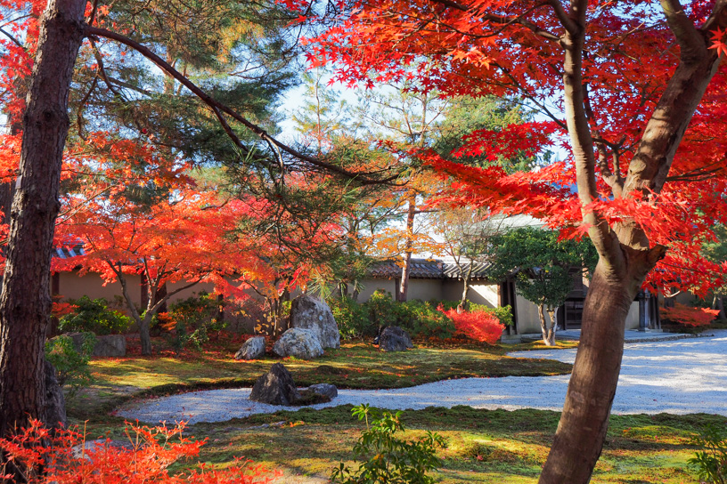 The Hojo’s dry landscape garden, Daioen Garden, and the courtyard garden, Chion-tei Garden, are also highlights.