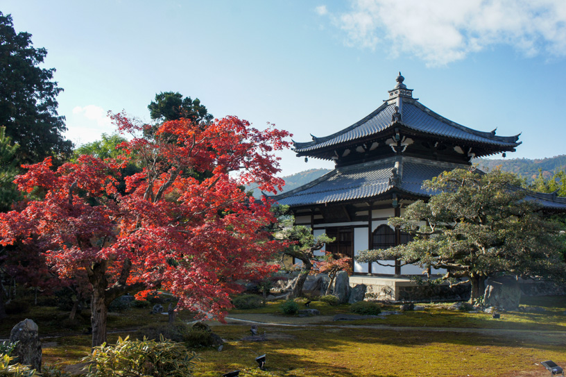 The temple is associated with the imperial family, having been converted from a detached palace of Emperor Saga into a temple.