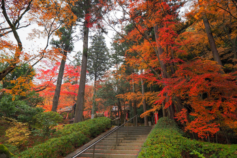 It is worshipped as the Kannon of the head (to ward off headaches and to bestow wisdom). In autumn, the temple is known for its beautiful autumn leaves.