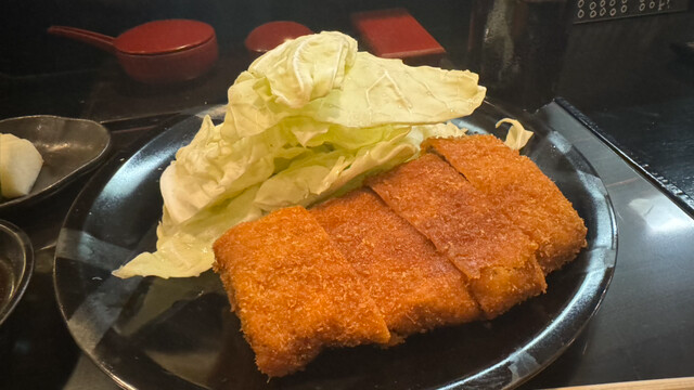 The thick pork, covered with a crispy, ultra-thin batter like a kushikatsu, is very juicy and satisfying!