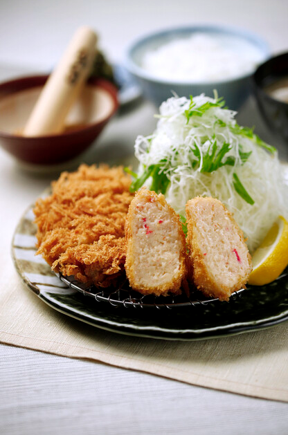 Dive the cutlet into a plate of sesame seeds rubbed with a sesame grinder to the desired coarseness, and then covered with the sauce!