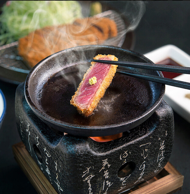 The meat is heated on a hot iron plate until it is cooked to your desired doneness.
