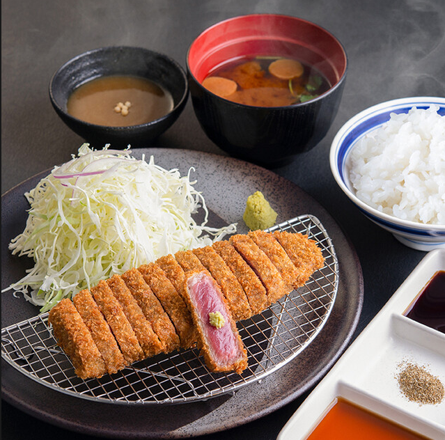 Delicious lean beef cutlet. You can grill it on a flaming teppan to your own liking. I preferred to eat it after grilling it a little. It was the most delicious.