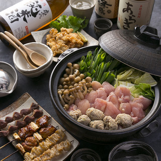 Charcoal-grilled chicken and earthenware pots are the pride of Torito! All-you-can-drink for 90 minutes with “Chicken 5-meat Set”. 6,820yen