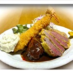 This time, I chose half pineapple rice because I could enjoy both of the two sauces, demi-glace and curry.